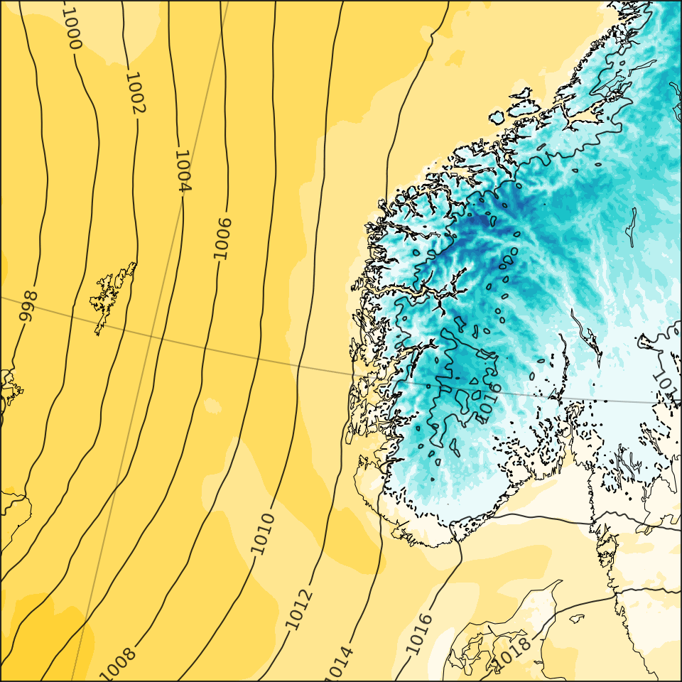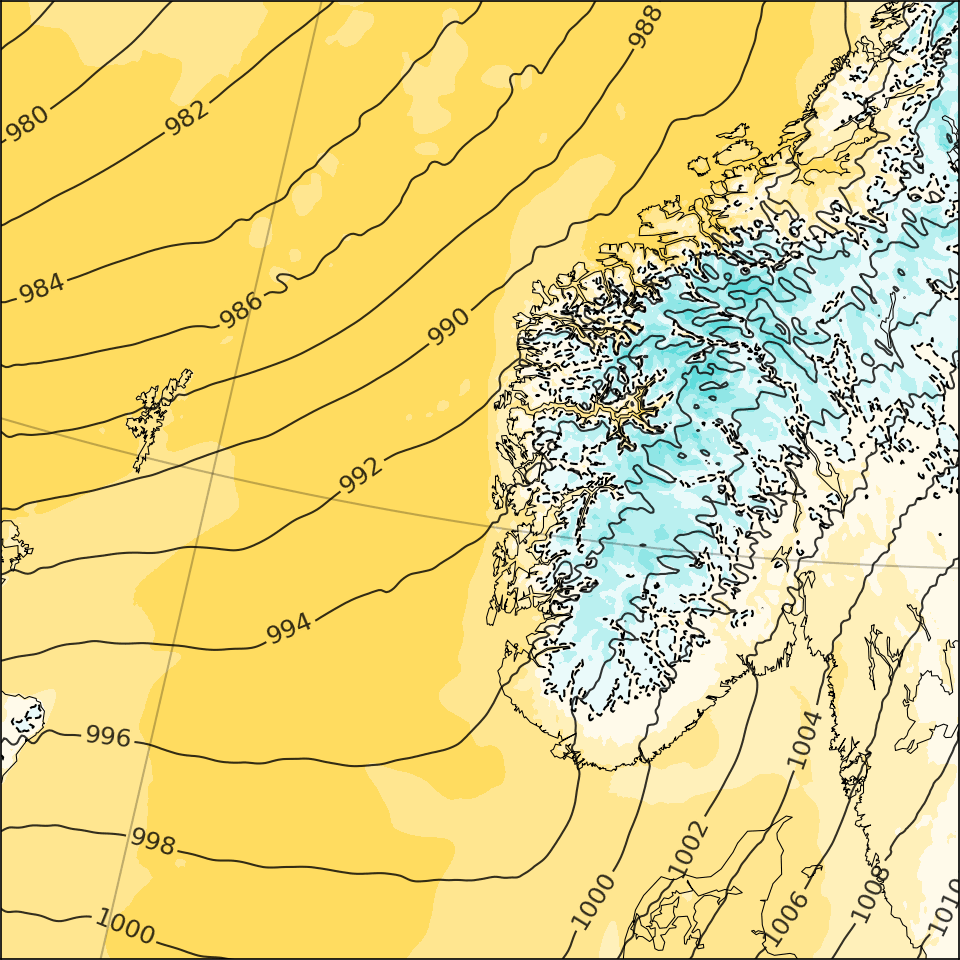 - Sea-level pressure [hPa] (black), contour interval = 2 hPa