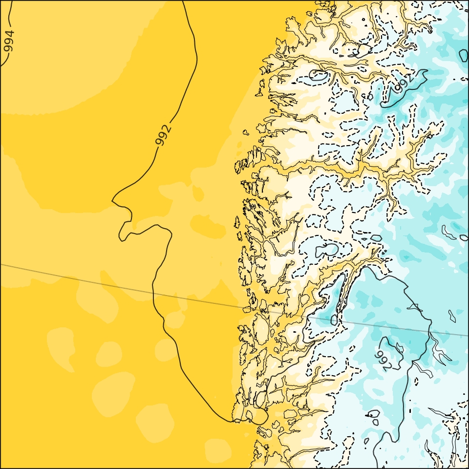 - Sea-level pressure [hPa] (black), contour interval = 2 hPa